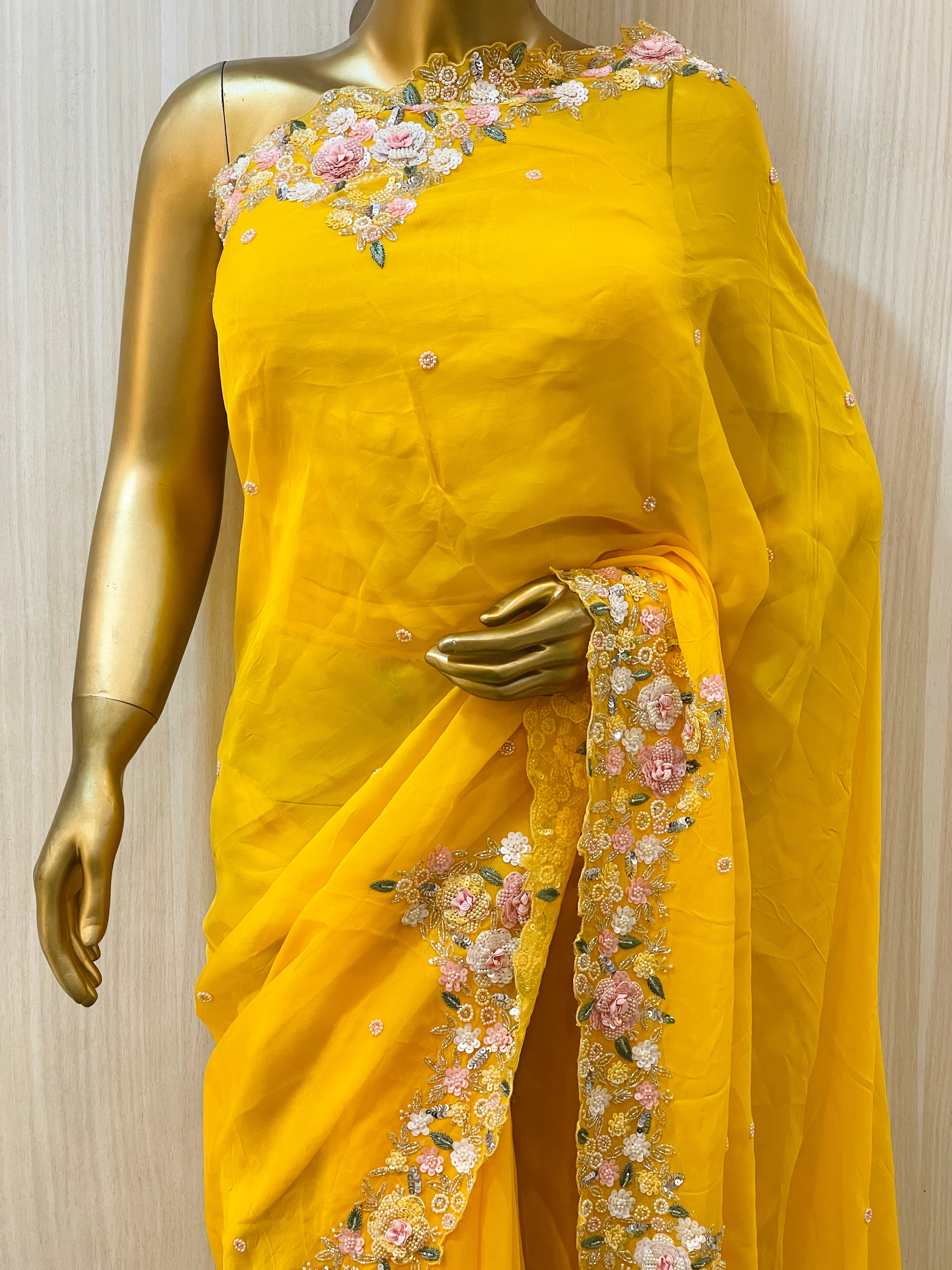 Speaks in vibrant language of legacy in textile, we are old school with modern love of pure fabricated hand-work sarees and lehenga.